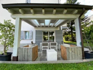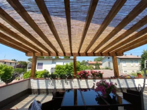 Pergolato in legno con l’aggiunta del plexiglas di protezione
